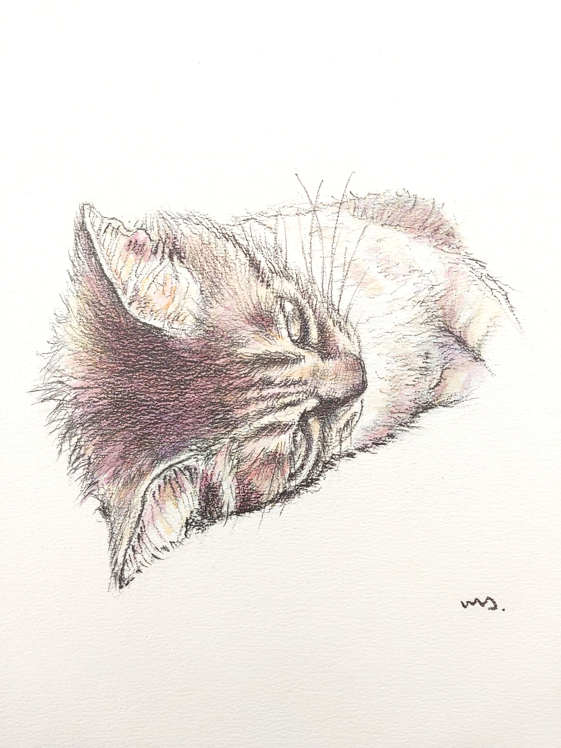 鉛筆でほわほわの毛、一本一本こだわりました。